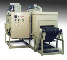 Three Zone Conveyor Oven with independent re-circulation, exhaust and heat controls for each zone conveyor. Belt not shown. (Pharmaceutical Application).